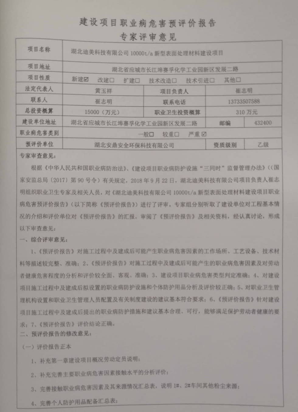 项目名称 | 湖北迪美科技有限公司10000t/a新型表面处理材料建设项目 | ||||||||||||||||||||||||||||||||||||||||||||||||||||||||||||