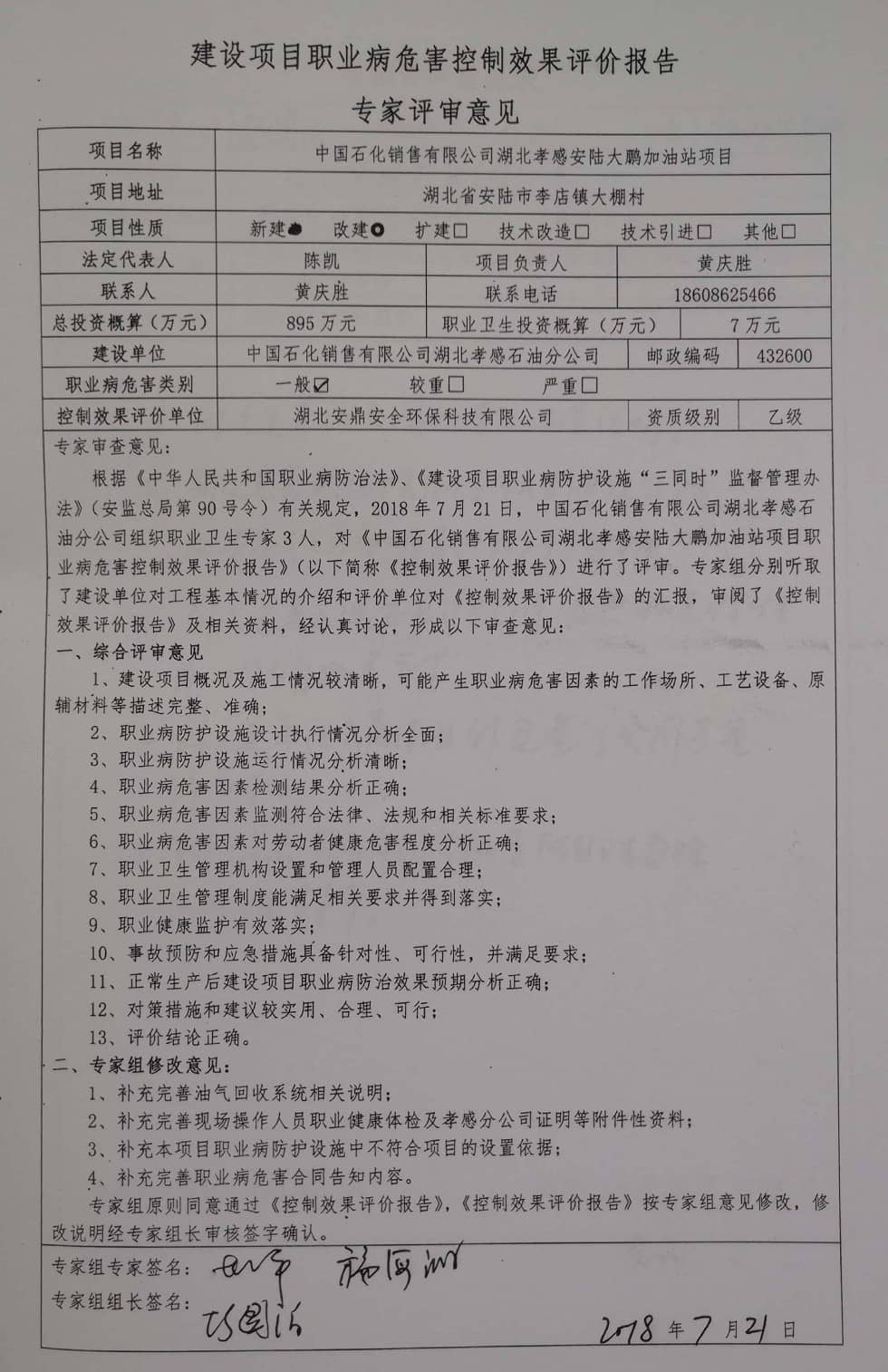 项目名称 | 中国石化销售有限公司湖北孝感安陆大鹏加油站项目 | |||||||||||